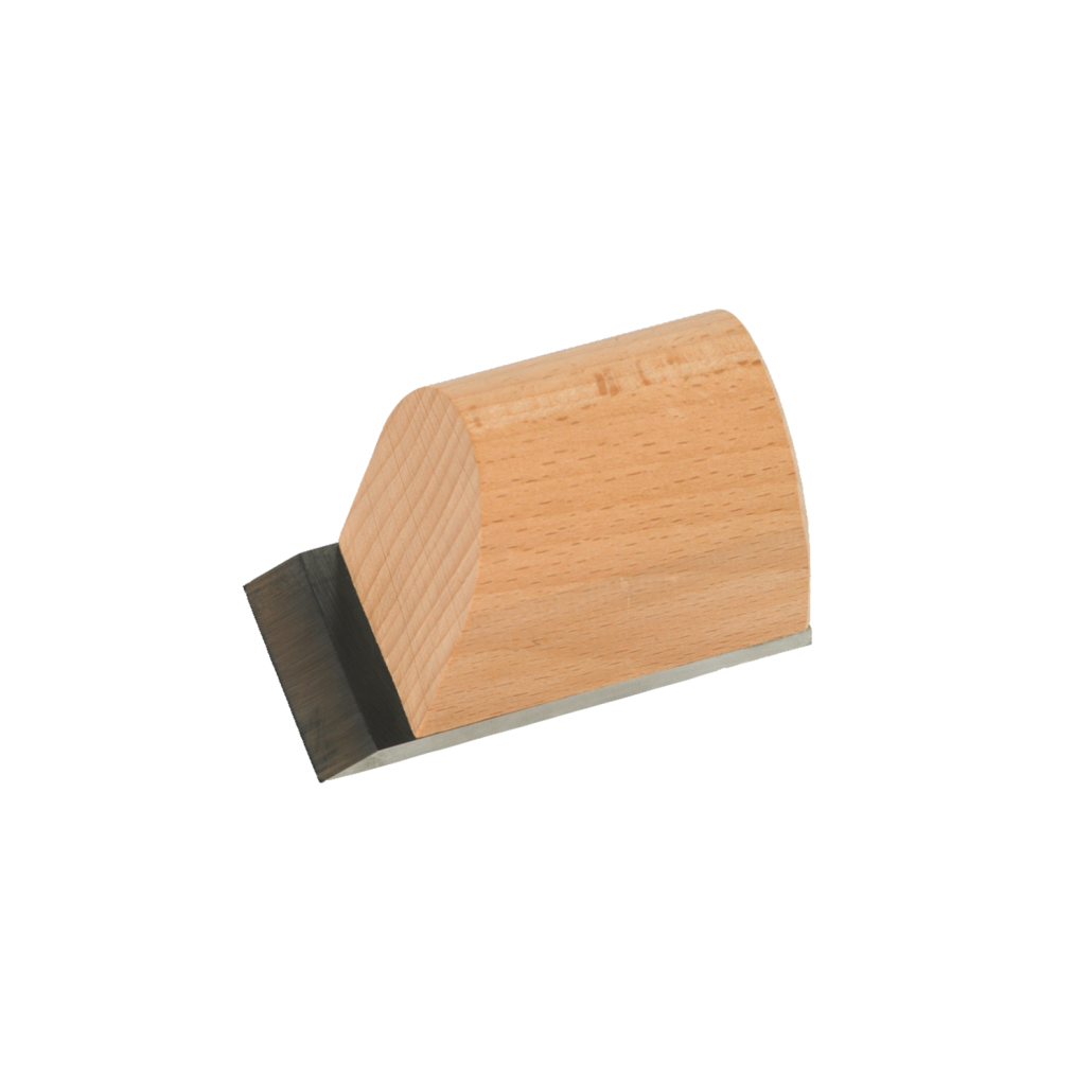 Snijblok met massieve beukenhouten handgreep en een scherp geslepen stalen snijblad (90 x 50 mm) voor het nauwkeurig verwijderen van overtollig knoestvuller.