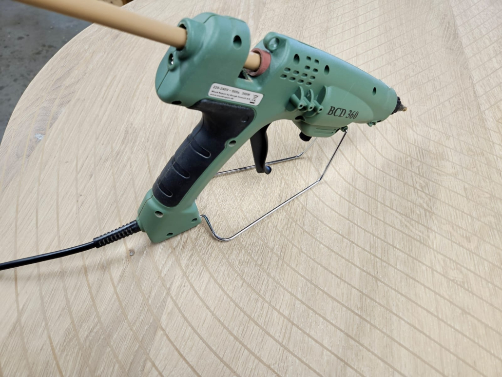 Noest gevuld met WoodFix knoestvuller – aangebracht met verwarmd pistool